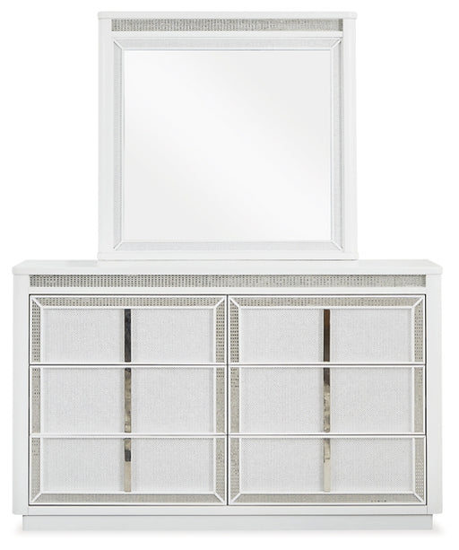 Signature Design by Ashley®Transform your bedroom with this dresser and mirror. Its modern design and glamorous details create a sophisticated retreat. The built-in LED light...