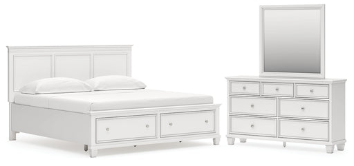Fortman King Panel Storage Bed with Mirrored Dresser