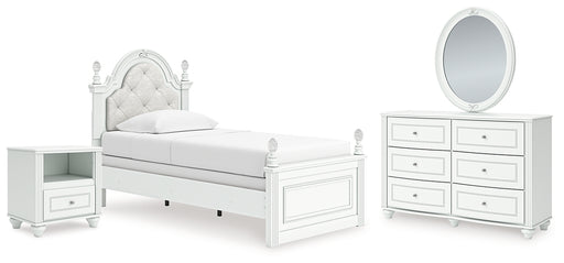 Kozlani Twin Upholstered Panel Bed, Dresser, Mirror and Nightstand