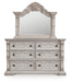 | Details | PCB948B5: Includes upholstered panel headboard, footboard, rails and slats, Made with hardwood solids, oak and ash swirl veneers, MDF substrates and cast resin components, Side rails feature laminated solid hardwood slat support rails (or LVL) with glued and screwed blocking for added strength, Antiqued white finish, Polyester upholstery, Foundation/box spring required, sold separately, Mattress available, sold separately , Assembly required, PCB948B1: Includes dresser and mirror, Dresser made with hardwood solids, oak and ash swirl veneers, MDF substrates and cast resin components, Mirror made with solid wood, Antiqued white finish, Hardware with antiqued bronze-tone finish, 6 smooth-gliding drawers with fully finished interiors, English dovetail construction and heavy-duty ball-bearing side glides (top drawers felt lined), Mirror attaches to back of dresser, PCB948-93: Made with hardwood solids, oak and ash swirl veneers, MDF substrates and cast resin components, Antiqued white finish, Hardware with antiqued bronze-tone finish, 2 smooth-gliding drawers with fully finished interiors, English dovetail construction and heavy-duty ball-bearing side glides (top drawer felt lined), Pull-out tray behind bottom drawer, 110V power supply with USB-A and USB-C charging ports, Power cord included; UL Listed, | |