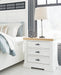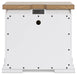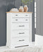Details B844B5: Includes panel headboard, storage footboard, rails and roll slats, Footboard made with hardwood solids, MDF substrates and butcher block oak veneer, Headboard and rails made with hardwood solids and MDF substrates, White finish, Headboard with inset black metal barn sash, 2 drawers in footboard with fully finished interior, dovetail construction and ball-bearing side glides, Pulls with matte black finish, Bed does not require a foundation/box spring, Mattress available, sold separately, Assembly required, B844B1: Includes dresser and mirror, Made with hardwood solids, MDF substrates and butcher block oak veneer, Dresser with 2-tone finish (white finish; butcher block oak veneer with natural finish), Pulls with matte black finish, 10 spacious drawers with fully finished interiors (top drawers felt lined), dovetail construction and ball-bearing side glides , Drawers with inset picture fronts, Mirror attaches to back of dresser, B844-46: Made with hardwood solids, MDF substrates and butcher block oak veneer, 2-tone finish (white finish; butcher block oak veneer with natural finish), Pulls with matte black finish, 5 spacious drawers with fully finished interiors (top drawers felt lined), dovetail construction and ball-bearing side glides, Drawers with inset picture frame fronts, B844-93: Made with hardwood solids, MDF substrates and butcher block oak veneer, 2-tone finish (white finish; butcher block oak veneer with natural finish), Pulls with matte black finish, 3 spacious drawers with fully finished interiors (top drawers felt lined), dovetail construction and ball-bearing side glides, 110V power supply with dual USB charging ports, Power cord included; UL Listed, Drawers with inset picture frame fronts,