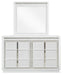 Details B822B5: Includes king/California king upholstered headboard, storage footboard, rails and roll slats, Made with solid wood components, MDF substrate and decorative laminate, White lacquer finish, Vertical metal drawer pulls, Faux leather upholstery, Built-in LED lighting with 3-way dimmer switch, 2 drawers with fully finished interior, dovetail construction and ball-bearing side glides, Drawers with rhinestone frames; textured laminate drawer fronts, Power cord included; UL Listed, Bed does not require additional foundation/box spring; accommodates most zero clearance adjustable bases with the addition of a bunkie board, Mattress available, sold separately, Assembly required, B822B1: Includes dresser and mirror, Made with solid wood components, MDF substrate and decorative laminate, White lacquer finish, Vertical metal drawer pulls, Built-in LED lighting with 3-way dimmer switch, 6 drawers with fully finished interior, dovetail construction and heavy duty ball-bearing side glides, Drawers with rhinestone frames; textured laminate drawer fronts, Mirror attaches to back of dresser, Power cord included; UL Listed, B822-92: Made with solid wood components, MDF substrate and decorative laminate, White lacquer finish, Vertical metal drawer pulls, Built-in LED lighting with 3-way dimmer switch, 2 drawers with fully finished interior, dovetail construction and heavy duty ball-bearing side glides, Drawers with rhinestone frames; textured laminate drawer fronts, 110V power supply with USB-A and USB-C charging ports, Power cord included; UL Listed,