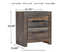 | Details | B211-46: Made of engineered wood (MDF/particleboard) and decorative laminate, Brown rustic finish with burnt orange and teal accents in a replicated wood grain with authentic touch, Large-scale hardware with dark finish, 5 smooth-gliding drawers, Drawer interiors are lined with a faux linen laminate for a clean, finished look, Includes tipover restraint device, Small Space Solution, Safety is a top priority, clothing storage units are designed to meet the most current standard for stability, ASTM F 2057 (ASTM International), Drawers extend out to accommodate maximum access to drawer interior while maintaining safety, B211-92: Made of engineered wood (MDF/particleboard) and decorative laminate, Brown rustic finish with burnt orange and teal accents in a replicated wood grain with authentic touch, 2 smooth-gliding drawers, Drawer interiors are lined with a faux linen laminate for a clean, finished look, Large-scale hardware with dark finish, 2 slim-profile USB-C charging stations, Power cord included; UL Listed, Small Space Solution, B211B1: Made of engineered wood (MDF/particleboard) and decorative laminate, Brown rustic finish with burnt orange and teal accents in a replicated wood grain with authentic touch, 6 smooth-gliding drawers, Drawers lined with faux linen laminate, Dark-tone industrial hardware, Mirror attaches to back of dresser, Assembly required, Includes tipover restraint device, B211B55: Includes headboard, footboard with storage and rails, Made of engineered wood (MDF/particleboard) and decorative laminate, Brown rustic finish with burnt orange and teal accents in a replicated wood grain with authentic touch, 2 smooth-gliding drawers in footboard, Foundation/box spring required, sold separately, Mattress available, sold separately, Assembly required, Bed is not compatible with an adjustable base, | |