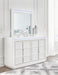 Details B822B4: Includes king/California king upholstered headboard, storage footboard, rails and roll slats, Made with solid wood components, MDF substrate and decorative laminate, White lacquer finish, Vertical metal drawer pulls, Faux leather upholstery, Built-in LED lighting with 3-way dimmer switch, 2 drawers with fully finished interior, dovetail construction and ball-bearing side glides, Drawers with rhinestone frames; textured laminate drawer fronts, Power cord included; UL Listed, Bed does not require additional foundation/box spring; accommodates most zero clearance adjustable bases with the addition of a bunkie board, Mattress available, sold separately, Assembly required, B822B1: Includes dresser and mirror, Made with solid wood components, MDF substrate and decorative laminate, White lacquer finish, Vertical metal drawer pulls, Built-in LED lighting with 3-way dimmer switch, 6 drawers with fully finished interior, dovetail construction and heavy duty ball-bearing side glides, Drawers with rhinestone frames; textured laminate drawer fronts, Mirror attaches to back of dresser, Power cord included; UL Listed, B822-92: Made with solid wood components, MDF substrate and decorative laminate, White lacquer finish, Vertical metal drawer pulls, Built-in LED lighting with 3-way dimmer switch, 2 drawers with fully finished interior, dovetail construction and heavy duty ball-bearing side glides, Drawers with rhinestone frames; textured laminate drawer fronts, 110V power supply with USB-A and USB-C charging ports, Power cord included; UL Listed,