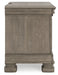 Details | B924B2: Includes panel headboard and sleigh footboard with rails, Made with hardwood solids, birch veneer and MDF substrate, Light gray finish enhances the natural wood grain, Foundation/box spring required, sold separately, Mattress available, sold separately, Assembly required, B924B1: Includes dresser and mirror, Made with hardwood solids, birch veneer and MDF substrate, Light gray finish enhances the natural wood grain, Ring pull hardware, 9 drawers with fully finished interiors, dovetail construction and ball-bearing side glides, Jewelry drawer conveniently located in the center valance, Mirror attaches to back of dresser, B924-93: Made with hardwood solids, birch veneer and MDF substrate, Light gray finish enhances the natural wood grain, Ring pull hardware, 3 drawers with fully finished interiors, dovetail construction and ball-bearing side glides, Small accessory drawer conveniently located in the upper valance, 110V power supply with dual USB charging ports, Power cord included; UL Listed, | |