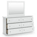 Details B139B41: Includes panel headboard/footboard and rails, Made with engineered wood (MDF/particleboard/plywood) and decorative laminate for the right balance of affordability and durability, Replicated solid white paint, Decorative laminate replicates natural or man-made material surfaces with consistent color, pattern and texture, Foundation/box spring required, sold separately, Mattress available, sold separately, Assembly required, B139B40: Includes dresser and mirror, Made of engineered wood (MDF/particleboard), Knobs with pewter-tone finish, Scalloped moulding, 6 smooth-operating drawers, Includes tipover restraint device, Mirror attaches to back of dresser; can also be mounted on wall horizontally or vertically, Safety is a top priority, clothing storage units are designed to meet the most current standard for stability, ASTM F 2057 (ASTM International), Drawers extend out to accommodate maximum access to drawer interior while maintaining safety,