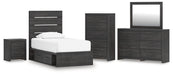 Hollivern Twin Panel Storage Bed with Mirrored Dresser, Chest and Nightstand