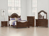 Details | Includes poster headboard/footboard panels, rails and headboard posts, Made with hardwood solids, cherry veneer with MDF substrates, decorative cast resin and furniture grade plastic components , Cherry brown finish, Headboard with metallic accent filigree, Foundation/box spring required, sold separately, Mattress available, sold separately, Assembly required | |