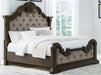 From its ornamental appliques to its large scale, this queen upholstered bed makes a bold statement. Showcasing sculptural ornate details and button tufting, this opulent bed wows with stunning style. The look is timeless. The feel? Right at home.