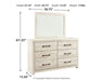Details Includes dresser with mirror, Made of engineered wood (MDF/particleboard) and decorative laminate, Wispy white finish over replicated oak grain with authentic touch, 6 smooth-gliding drawers, Drawer interiors are lined with a faux linen laminate for a clean, finished look, Large-scale hardware with dark finish, Mirror attaches to back of dresser, Assembly required