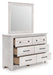 Looking to create a bedroom that feels airy and beautifully put together? This casually comfy dresser with mirror is your perfect solution. Its clean lines, whitewash finish and replicated pine grain exude a charming cottage-inspired feel that brightens your restful retreat. Spacious drawers with dark bronze-tone hardware stow away clothes and more. Now there’s a fresh take on country living we can get behind.