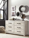 | Details | Made of engineered wood (MDF/particleboard) and decorative laminate, Wispy white finish over replicated oak grain with authentic touch, Large-scale hardware with dark finish, 6 smooth-gliding drawers, Drawer interiors are lined with a faux linen laminate for a clean, finished look, Safety is a top priority, clothing storage units are designed to meet the most current standard for stability, ASTM F 2057 (ASTM International), Drawers extend out to accommodate maximum access to drawer interior while maintaining safety | |