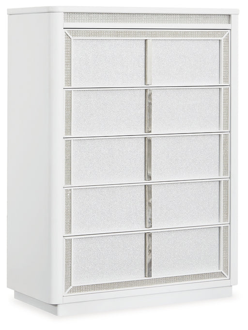 Signature Design by Ashley®Transform your bedroom with this chest of drawers. Its modern design and glamorous details create a sophisticated retreat. The built-in LED lightin...
