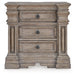 Discover something exceptional with this nightstand. Its impressive silhouette offers a casual traditional aesthetic, embodied by classic-inspired columns and a relaxed grayish brown finish. Casually cool drawers with inset framed fronts are packed with ample space for all your bedside essentials. Bedside charging for your go-to devices is made easy with power outlets and USB ports.