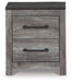 Alluring smoky gray hues create an ambiance that just feels right. This nightstand has a charming wood-like appeal enriched by a two-tone, textured look. Light neutral shades contrasted by a dark charcoal finish bring a refined yet relaxed feel to contemporary decor and a sense of serenity to your space.
