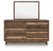 Details Includes dresser and mirror, Made with engineered wood (MDF/particleboard/plywood) and decorative laminate for the right balance of affordability and durability , Warm natural brown finish over replicated walnut grain with authentic touch, Decorative laminate replicates natural or man-made material surfaces with consistent color, pattern and texture, Integrated drawer pulls, 6 smooth-gliding drawers , Drawer interiors are lined with a faux linen laminate for a clean, finished look , Mirror attaches to back of dresser; can also be mounted on wall horizontally or vertically , Safety is a top priority, clothing storage units are designed to meet the most current standard for stability, ASTM F 2057 (ASTM International), Drawers extend out to accommodate maximum access to drawer interior while maintaining safety, Minor assembly required