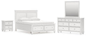 Fortman Queen Panel Storage Bed with Mirrored Dresser and Nightstand