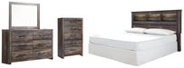 Drystan King/California King Bookcase Headboard with Mirrored Dresser and Chest