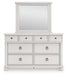 | Details | PCB823B2: Includes headboard/footboard panels, posts and poster rails , Made with hardwood solids, veneers and MDF substrates , Side rails feature laminated solid hardwood slat support rails (or LVL) with glued and screwed blocking for added strength, Rubbed antiqued white finish , Foundation/box spring required, sold separately, Mattress available, sold separately , Assembly required, PCB823B1: Includes dresser and mirror, Dresser made with hardwood solids, veneers and MDF substrates , Mirror made with solid wood, Rubbed antiqued white finish, Metal hardware with pewter-tone finish, 8 smooth-gliding drawers with fully finished interiors, French/English dovetail construction and heavy-duty ball-bearing side glides, Top drawers felt lined, Mirror attaches to back of dresser, | |
