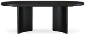 Informed by art deco design, this oval dining table makes a lasting impression in a simply stunning way. Its magnificent curved silhouette and architectural pedestal are enhanced with a rich layered black finish. It’s the contemporary statement piece you’ve been seeking to elevate late-night dinners and full-on family feasts.