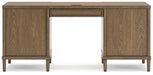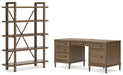Details H769-21: Made with hardwood solids, oak veneer and MDF substrate, Brown oak finish, Wood and metal drawer pulls, 5 standard drawers; 1 file drawer, Drawers with dovetail construction, fully finished interiors and ball-bearing side glides, 110V power supply with USB-A and USB-C charging ports, Power cord included; UL Listed, Open raceway for power cord management, Assembly required, H769-70: Frames made with solid wood, Shelves made with hardwood solids, oak veneer and MDF substrate, Brown oak finish, 5 shelves, Back brace set with metal hook and keepers, Assembly required,