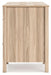Details Made with engineered wood (MDF/particleboard/plywood) and decorative laminate for the right balance of affordability and durability, Two-tone finish (dry, light finish over replicated oak grain; light chevron pattern), Decorative laminate replicates natural or man-made material surfaces with consistent color, pattern and texture, Dark-colored hardware, 1 smooth-gliding drawer with ball-bearing side glides; vinyl-wrapped sides and back for durability, Open storage behind single cabinet door, Assembly required