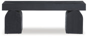 Details Made of solid wood, Matte black finish with lightly sandblasted effect, Oversized decorative legs, Assembly required