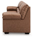 Modern comfort never looked so good. Sporting supremely soft yet durable cushions accented with high-fashion jumbo stitching, this stunning sofa is the ultimate choice in comfortably cool, contemporary style. Its caramel-hued faux leather indulges with an upscale feel and wows like the real thing.