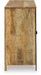 | Details | Made with mango wood, veneer, engineered wood and metal, Distressed light brown finish, Metal legs and door pulls with black finish, 4 doors with soft-close hinges, 2 fixed shelves, Openings in back for electronics, Minor assembly required, simply lay flat and attach feet | |