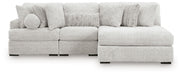 Details | Includes 3 modular pieces: left-arm facing corner chair, armless chair and oversized armless chaise, "Left-arm" and "right-arm" describe the position of the arm when you face the piece, Modular pieces can float anywhere; sides are finished (with no connectors); versatile modular pieces fit together in a variety of configurations, Corner-blocked frame, Loose seat and reversible back cushions; high-resiliency foam cushions wrapped in poly fiber, Accent pillows included; pillows with soft polyfill, Polyester upholstery, Low-profile legs with faux wood finish , Platform foundation system resists sagging 3x better than spring system after 20,000 testing cycles by providing more even support, Smooth platform foundation maintains tight, wrinkle-free look without dips or sags that can occur over time with sinuous spring foundations | |