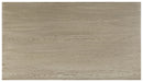 Details Made with oak veneer and engineered wood, Tabletop with warm gray finish, Distressed sand-casted aluminum base with antiqued pewter-tone finish, Assembly required
