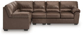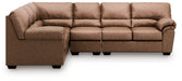 Details | Includes 3 pieces: left-arm facing sofa with corner wedge, armless chair and right-arm facing loveseat, "Left-arm" and "right-arm" describe the position of the arm when you face the piece , Corner-blocked frame , Attached back and loose seat cushions, High-quality foam cushions wrapped in poly fiber, Faux leather upholstery, Exposed feet with faux wood finish, Platform foundation system resists sagging 3x better than spring system after 20,000 testing cycles by providing more even support , Smooth platform foundation maintains tight, wrinkle-free look without dips or sags that can occur over time with sinuous spring foundations | |
