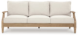 This outdoor sofa effortlessly pairs natural beauty with must-have durability. Its eucalyptus wood frame withstands the elements while making a high-style impression. And you can relax on the porch or poolside without the stress of added upkeep—this sofa’s UV-resistant performance fabric is a breeze to clean.