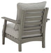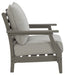 Details | Set of 2, Made of HDPE material, Gray finish with textured wood look, Seat/back cushions covered in solution-dyed Nuvella® (polyester) high-performance fabric, All-weather foam cushion core wrapped in soft polyester, Clean fabric with mild soap and water, let air dry; for stubborn stains, use a solution of 4 oz. bleach to 28 oz. water, Imported fabric and fill, Assembly required | |