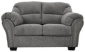 Why sacrifice comfort for style (or style for comfort) when you can have the best of both in this loveseat in pewter gray. Elements include a chic divided-back design and pillow top wrapped armrests that make nodding off all too easy. Calling attention to the elegantly flared armrests—black nickel-tone nailhead trim for a punch of cool character.