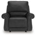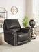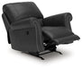 Details | Pull tab reclining motion, Corner-blocked frame with metal reinforced seat, Attached cushions, High-resiliency foam cushions wrapped in poly fiber, Faux leather upholstery, Decorative turned legs with faux wood finish, 360-degree swivel, Gentle rocking motion | |