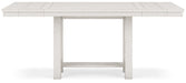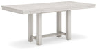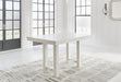 Details | D642-32: Made with rubberwood solids, ash veneer and MDF substrates, Antiqued white finish with wood grain texture, Tabletop with planked effect, Two 12” extension leaves, Table extends by pulling both ends and dropping in leaf, Assembly required, D642-124: Made with wood, Antiqued white finish with wood grain texture, Foam cushion with polyester upholstery, Nailhead trim, X-back, Assembly required, | |