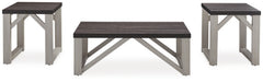 Details Includes coffee table and 2 end tables, Made of decorative laminate and MDF substrate, Replicated gray wood top, Antiqued white base, Assembly required