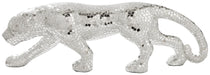 Decorate your home with this iconic mixed media sculpture. Featuring mosaic glass and paper composite, this panther will add an exotic element to any space. Create a fierce look in your bedroom or luxurious allure in your living room with this unique and thought-provoking piece.