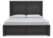 Details Includes king panel headboard, storage footboard and rails with roll slats, Made with hardwood solids, select oak veneers and engineered wood, Two-tone finish (brushed black and dusty grayish brown wood tone), Headboard with picture frame moulding, Footboard with two deep drawers, Smooth-gliding soft-close drawers with fully finished interiors and dovetail construction, Sleek drawer pulls with black finish, Bed does not require additional foundation/box spring; accommodates most zero clearance adjustable bases with the addition of a bunkie board, Mattress available, sold separately, Assembly required