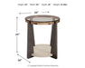 Details Made with solid wood, faux travertine laminate with MDF substrate and metal, Legs with grayish brown wood-tone finish, Metal frame with goldtone finish, Fixed lower shelf, Clear tempered glass tabletop, Assembly required