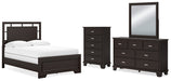 Covetown Full Panel Bed with Mirrored Dresser and Chest