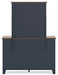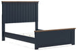 Details | B414B3: Includes panel headboard, footboard, rails and slats, Made with hardwood solids, mindi wood veneer and MDF substrates, Two-tone finish features a dark slate blue with a light brown wood-tone top, Foundation/box spring required, sold separately, Mattress available, sold separately, Assembly required, B414B1: Includes dresser and mirror, Made with hardwood solids, mindi wood veneer and MDF substrates, Two-tone finish features a dark slate blue with light brown wood-tone top, Nickel-tone metal knobs, 6 drawers with fully finished interior, dovetail construction and heavy duty ball-bearing side glides, Mirror attaches to back of dresser, B414-45: Made with hardwood solids, mindi wood veneer and MDF substrates, Two-tone finish features a dark slate blue with a light brown wood-tone top, Nickel-tone metal knobs, 4 drawers with fully finished interior, dovetail construction and heavy duty ball-bearing side glides, B414-92: Made with hardwood solids, mindi wood veneer and MDF substrates, Two-tone finish features a dark slate blue with a light brown wood-tone top, Nickel-tone metal knobs, 2 drawers with fully finished interior, dovetail construction and heavy duty ball-bearing side glides, | |