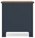 Add homespun charm to your restful retreat with this bedroom package. A modern take on timeless silhouettes, it pairs a dark slate blue finish with light brown tops. Drawer fronts and legs in a classic Shaker style bring an air of beautiful simplicity to the bedroom. Whether it's part of a charmingly curated guest suite or a casually carefree kids room, this set is a welcome addition.