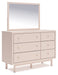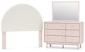 Details | B1323-87: Made with durable engineered wood frame covered in a creamy white boucle, Polyester upholstery, ¼" bolts (not included) are needed to attach headboard to your existing bed frame, Minor assembly required, B1323B1: Includes dresser and mirror, Made with engineered wood (MDF/particleboard/plywood) and decorative laminate for the right balance of affordability and durability, Subtle blush finish over replicated pecan wood grain, Decorative laminate replicates natural or man-made material surfaces with consistent color, pattern and texture, Champagne colored knobs, 6 smooth-gliding drawers , Drawer interiors are lined with a faux linen laminate for a clean, finished look, Mirror can be attached to back of dresser or wall mounted horizontally or vertically, Safety is a top priority, clothing storage units are designed to meet the most current standard for stability, ASTM F 2057 (ASTM International) , Drawers extend out to accommodate maximum access to drawer interior while maintaining safety, Minor assembly required, | |