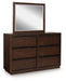 Details PCB857B6: Includes canopy, upholstered headboard, footboard, rails, posts and slats, Made with hardwood solids, mango wood veneer and MDF substrates , Side rails feature laminated solid hardwood slat support rails (or LVL) with glued and screwed blocking for added strength, Complex, rich dark brown finish, Foam headboard cushion with polyester upholstery , Measure room, including ceiling height, to ensure bed clears fans and light fixtures, Foam cushion with polyester upholstery , Foundation/box spring required, sold separately , Mattress available, sold separately , USB-A and USB-C charging ports, Power cord included; UL Listed, Assembly required, PCB857B1: Made with hardwood solids, mango wood veneer and MDF substrates , Complex, rich dark brown finish, Full-length metal rail pulls with matte black finish, 6 smooth-gliding drawers with fully finished interiors, dovetail construction and heavy-duty ball-bearing side glides (top drawers felt lined), Mirror attaches to back of dresser, Soft rounded pilasters, Raised plinth base, PCB857-92: Made with hardwood solids, mango wood veneer and MDF substrates, Complex, rich dark brown finish, Metal rail pulls with matte black finish, 2 smooth-gliding drawers with fully finished interiors, dovetail construction and heavy-duty ball-bearing side glides (top drawer felt lined), Soft rounded pilasters, Raised plinth base,