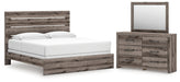 Graystorm King Panel Bed with Mirrored Dresser