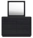 Details | B768B4: Includes headboard, footboard and rails, Made with pine solids, veneers and engineered wood substrate, Textured black wood stain with waxy topcoat, Extra wide rails for a bench-like wrap around, Foundation/box spring required, sold separately, Mattress available, sold separately, Assembly required, B768B1: Includes dresser and mirror, Made with pine solids, veneers and engineered wood substrate, Textured black wood stain with waxy topcoat, Hardware-less design, 6 drawers with fully finished interiors, dovetail construction and ball-bearing side glides (top drawers felt lined), Mirror attaches to back of dresser, B768-46: Made with pine solids, veneers and engineered wood substrate, Textured black wood stain with waxy topcoat, Hardware-less design, 5 drawers with fully finished interiors, dovetail construction and ball-bearing side glides (top drawers with felt-lined bottoms), | |