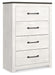 Details | B1190B9: Includes king panel headboard, footboard and rails, Made with engineered wood (MDF/particleboard) and decorative laminate, White rustic finish with replicated cedar grain and authentic touch, 2 decorative sconce lights, Lights in matte black finish with champagne-colored accents, Headboard with abstract design, Power cord included; UL Listed, Foundation/box spring required, sold separately, Mattress not included, sold separately, Assembly required, Bed is compatible with an adjustable base, B1190B1: Includes dresser with mirror, Made of engineered wood (MDF/particleboard) and decorative laminate, White rustic finish with replicated cedar grain, Rustic gray planked replicated oak grain with authentic touch, 6 smooth-gliding drawers with faux linen lining, Large scale dark colored handles, Mirror attaches to back of dresser, Assembly required, B1190-44: Made of engineered wood (MDF/particleboard), and decorative laminate, White rustic finish with replicated cedar grain, Rustic gray planked replicated oak grain with authentic touch, 4 smooth-gliding drawers with faux linen lining, Large scale dark colored handles, Safety is a top priority, clothing storage units are designed to meet the most current standard for stability, ASTM F 2057 (ASTM International), Drawers extend out to accommodate maximum access to drawer interior while maintaining safety, Assembly required, | |