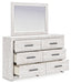 Details | B3788B7: Includes panel headboard/footboard and rails, Made with engineered wood (MDF/particleboard/plywood) and decorative laminate for the right balance of affordability and durability, Whitewash replicated worn through paint with authentic touch, Decorative laminate replicates natural or man-made material surfaces with consistent color, pattern and texture, Foundation/box spring required, sold separately, Mattress available, sold separately, Minor assembly required, B3788B1: Includes dresser and mirror, Made with engineered wood (MDF/particleboard/plywood) and decorative laminate for the right balance of affordability and durability, Whitewash replicated worn through paint with authentic touch, Decorative laminate replicates natural or man-made material surfaces with consistent color, pattern and texture, Large handles in black finish, 6 smooth-gliding drawers, Framed front and pilasters, Mirror attaches to back of dresser, Safety is a top priority, clothing storage units are designed to meet the most current standard for stability, ASTM F 2057 (ASTM International), Drawers extend out to accommodate maximum access to drawer interior while maintaining safety, Minor assembly required, B3788-92: Made with engineered wood (MDF/particleboard/plywood) and decorative laminate for the right balance of affordability and durability, Whitewash replicated worn through paint with authentic touch, Decorative laminate replicates natural or man-made material surfaces with consistent color, pattern and texture, Large handles with black finish, 2 smooth-gliding drawers, Framed front and pilasters, Minor assembly required, | |